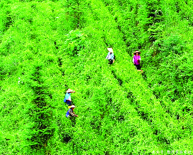 地派镇古洞村,村民们在茶园里采摘茶叶。